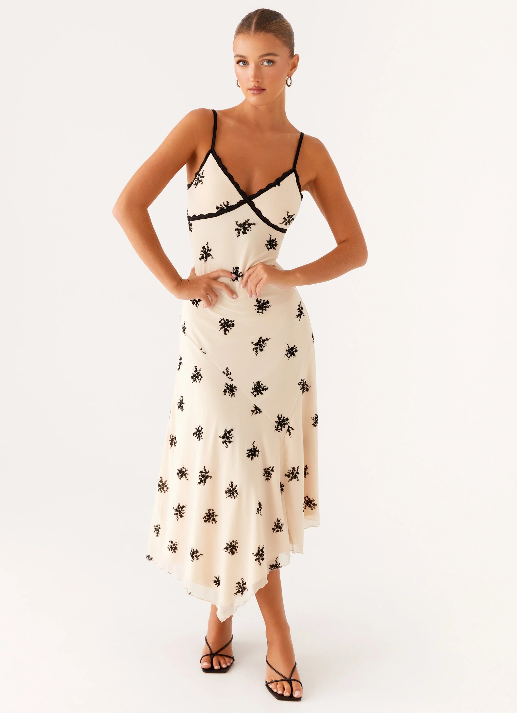 The Amelia Midi Dress embraces effortless elegance with its stretch material that moves with you. Fully lined for comfort, it features delicate floral embroidery that adds a touch of romance. Perfect for any evening where grace and style meet.