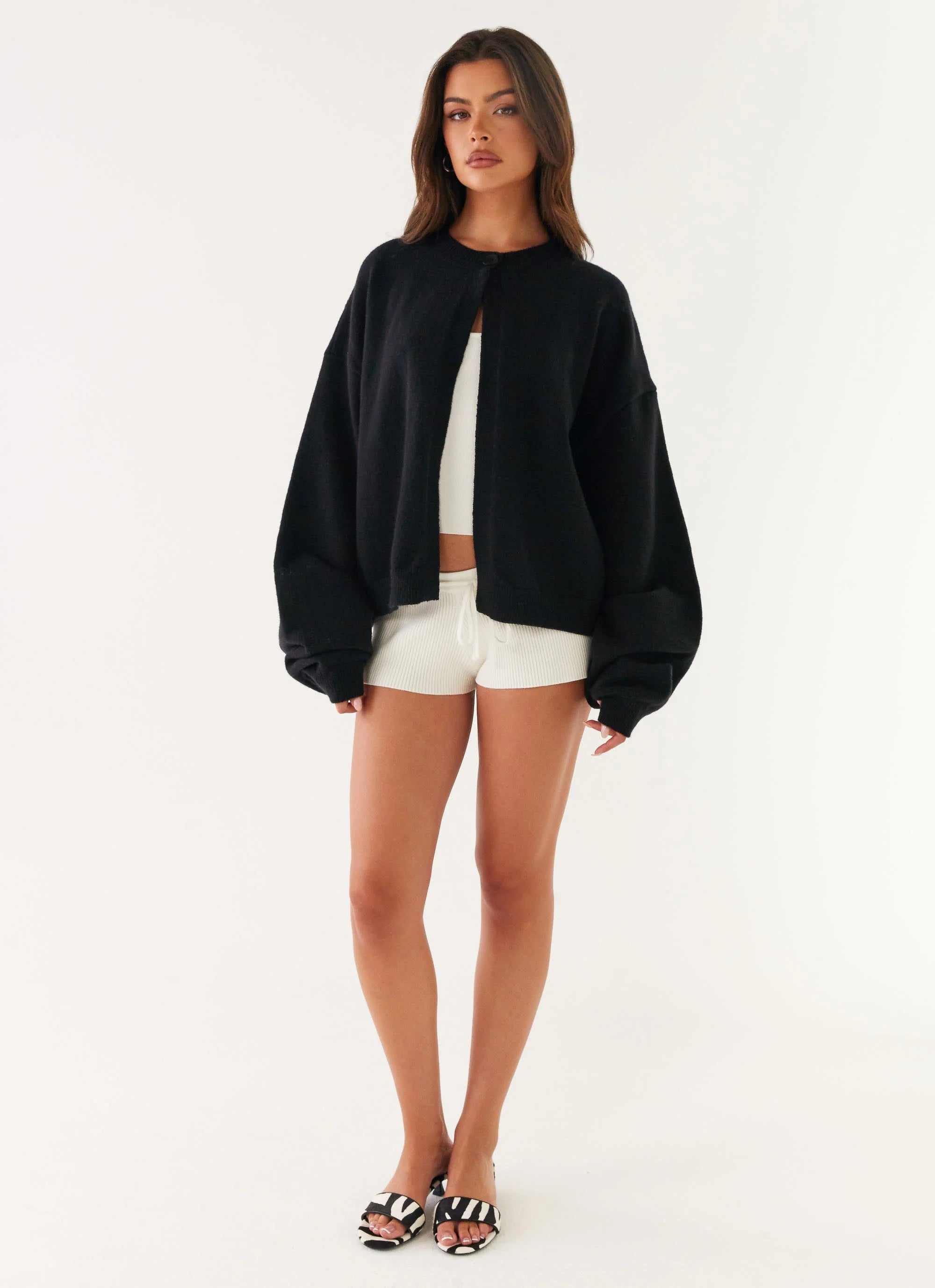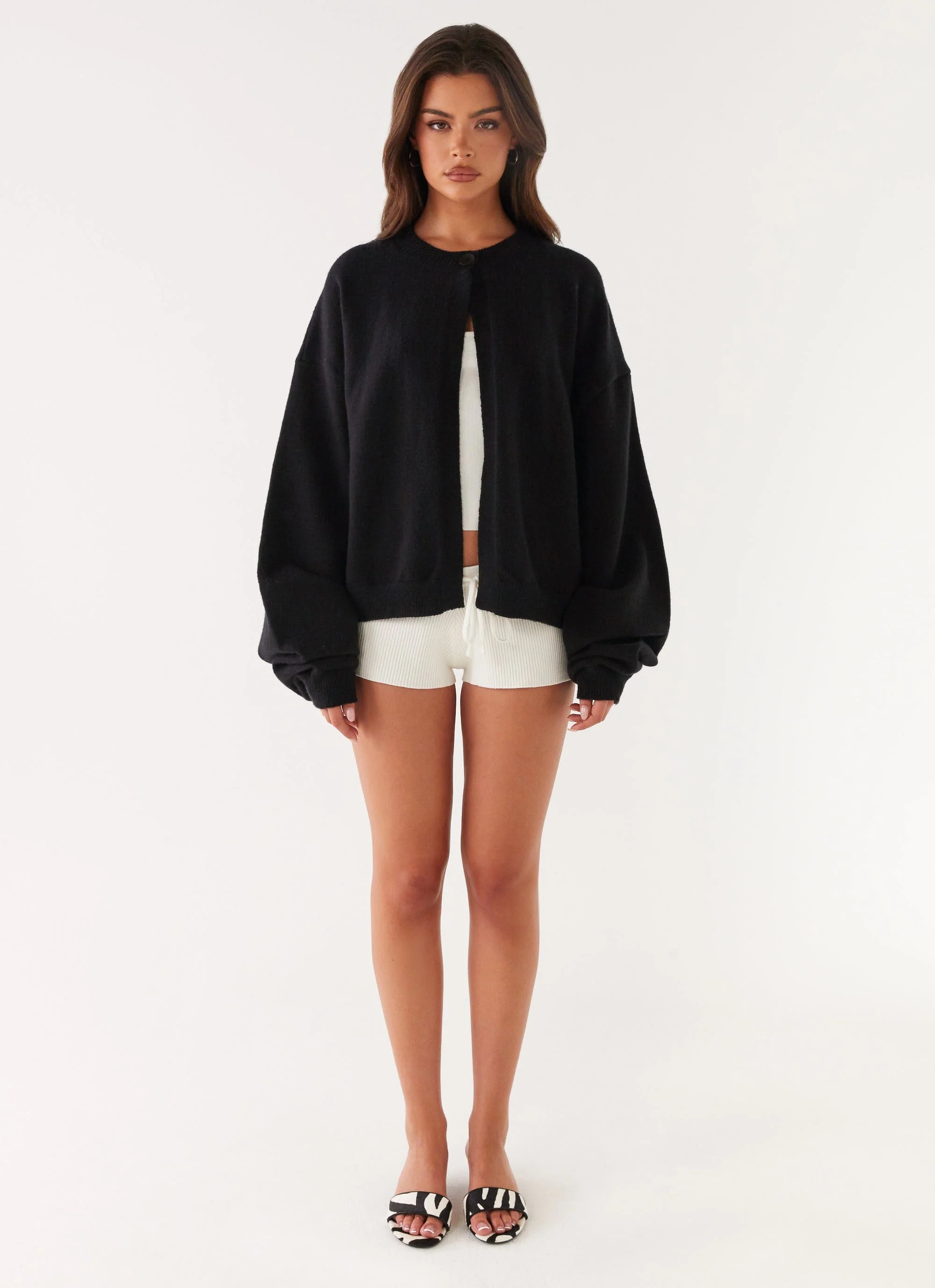 The Annie One Button Cardigan is the perfect mix of cozy and chic. Featuring a high scoop neckline and an oversized fit, it offers a relaxed yet stylish look.