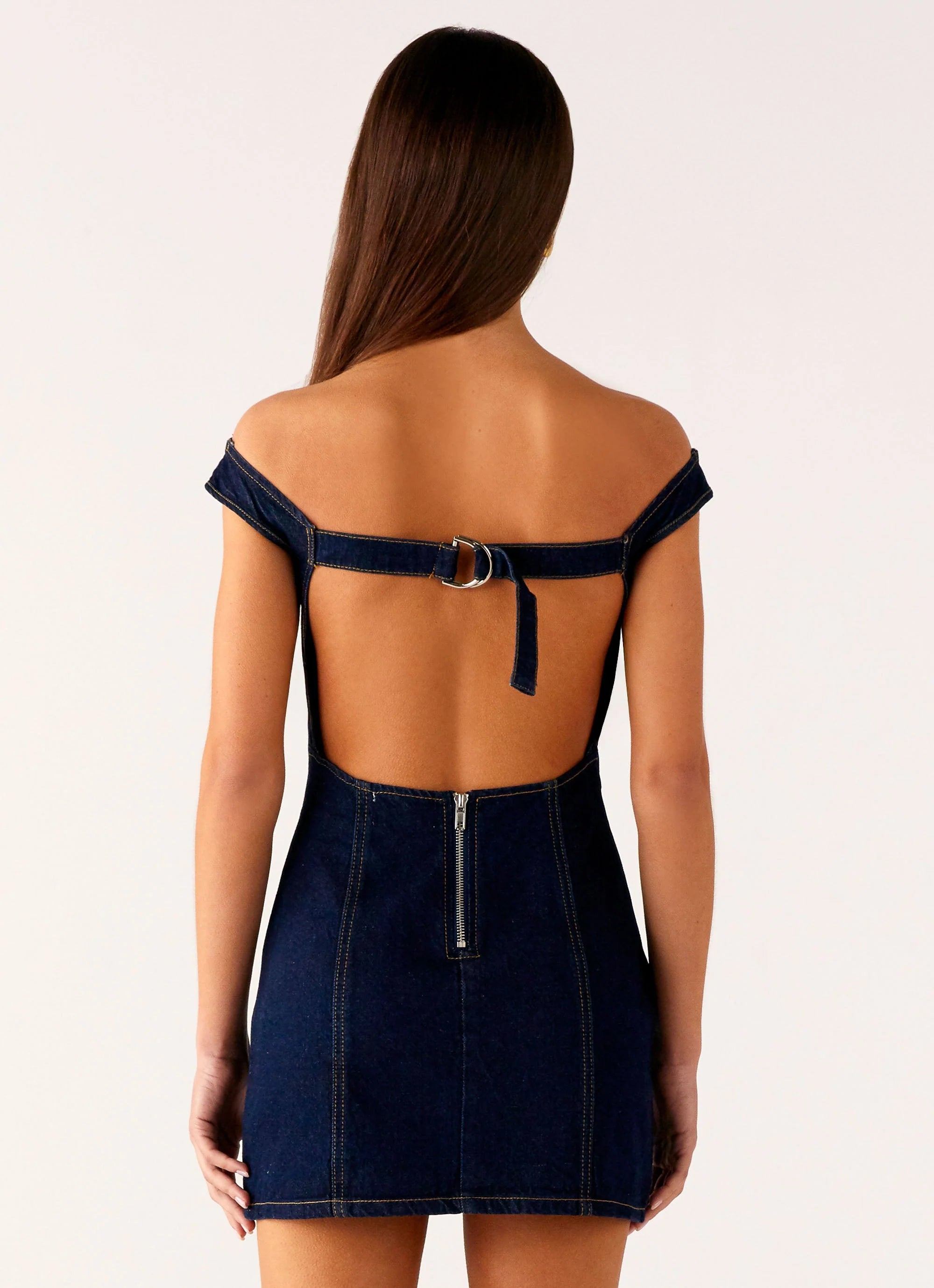The Bonnie Denim Mini Dress is made for nights that shine. Featuring a square neckline and a fitted silhouette, this unlined dress is finished with an open back, back tie, and back metal zipper for effortless evening style.