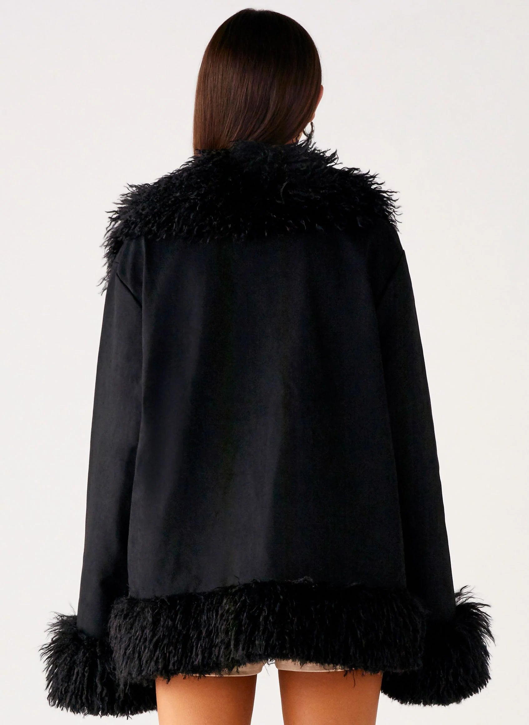 The Carmelita Faux Fur Trim Jacket is your go-to for cozy nights out. Featuring an open centre front and luxe faux fur collar and cuff trim, it’s fully lined for warmth and style.