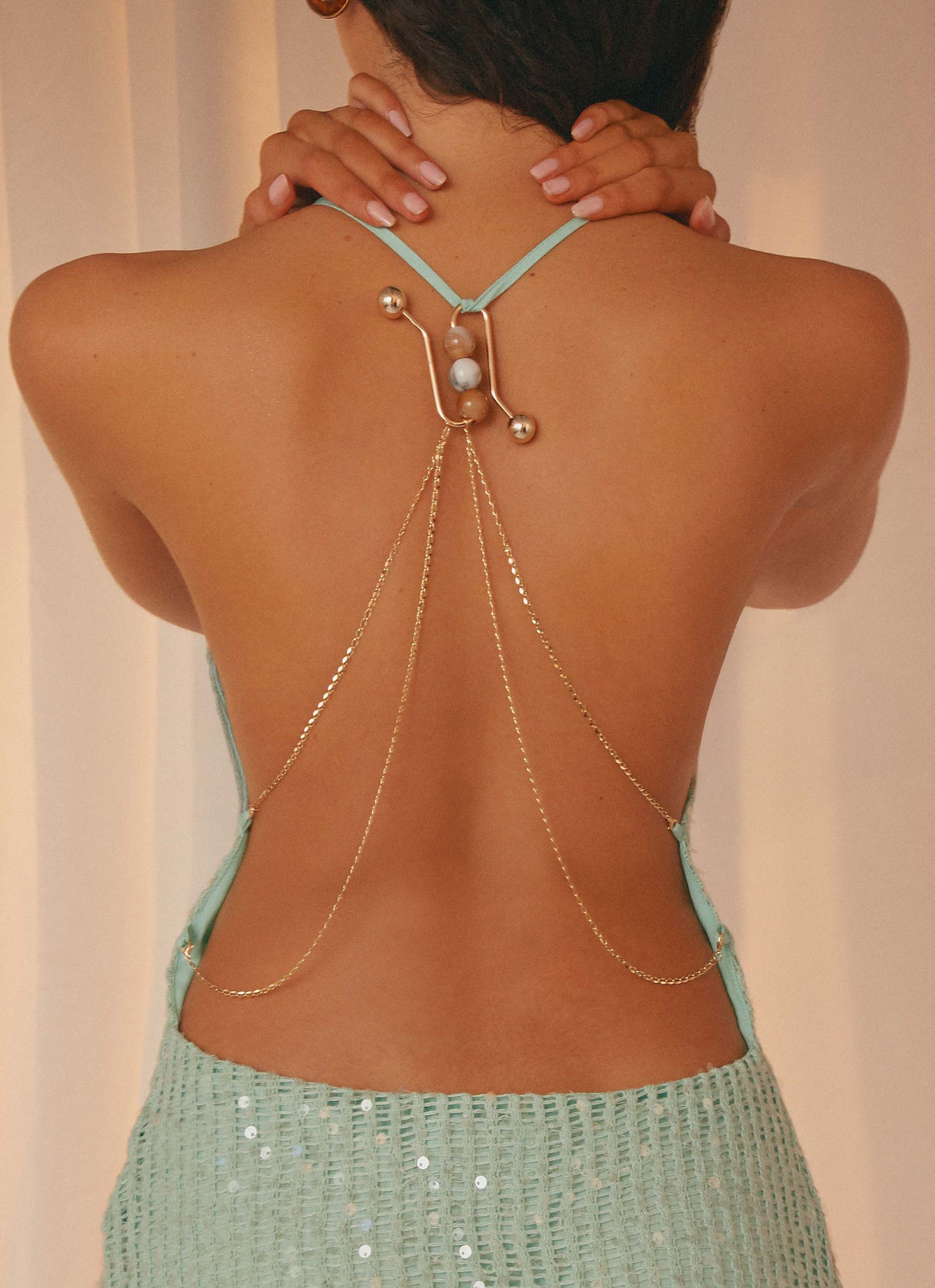 The Keela Sequin Mini Dress shines with a mini length and elegant cowl neckline. Featuring an open back with metal embellishment and beaded straps, this fully lined dress is crafted from shimmering sequin material with a flattering bias cut for a stunning silhouette.