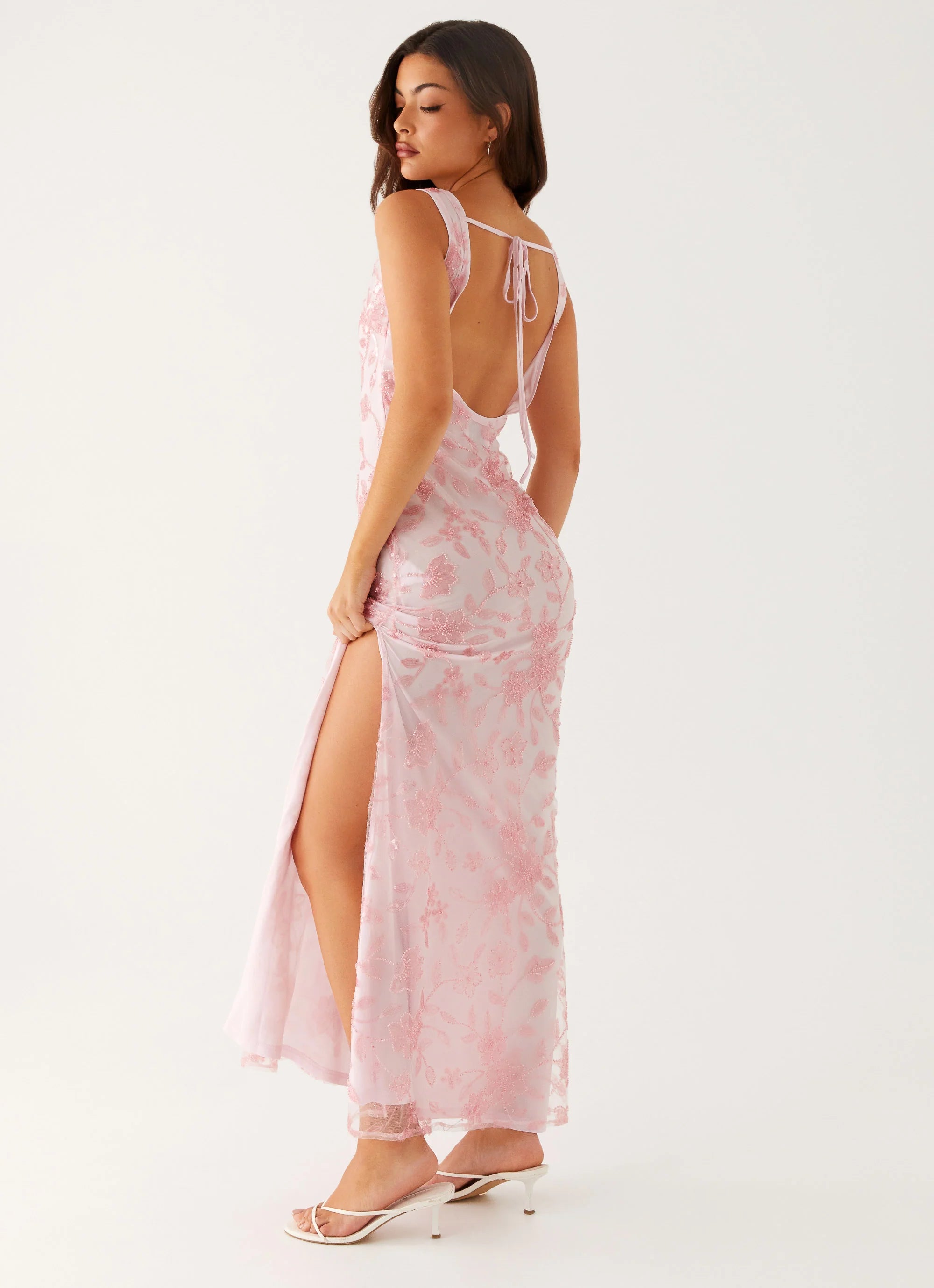The Moorey High Neck Maxi Dress is the epitome of glamour and elegance. Featuring a boat neckline and a stunning beaded material, this fully lined dress hugs your silhouette with effortless grace.