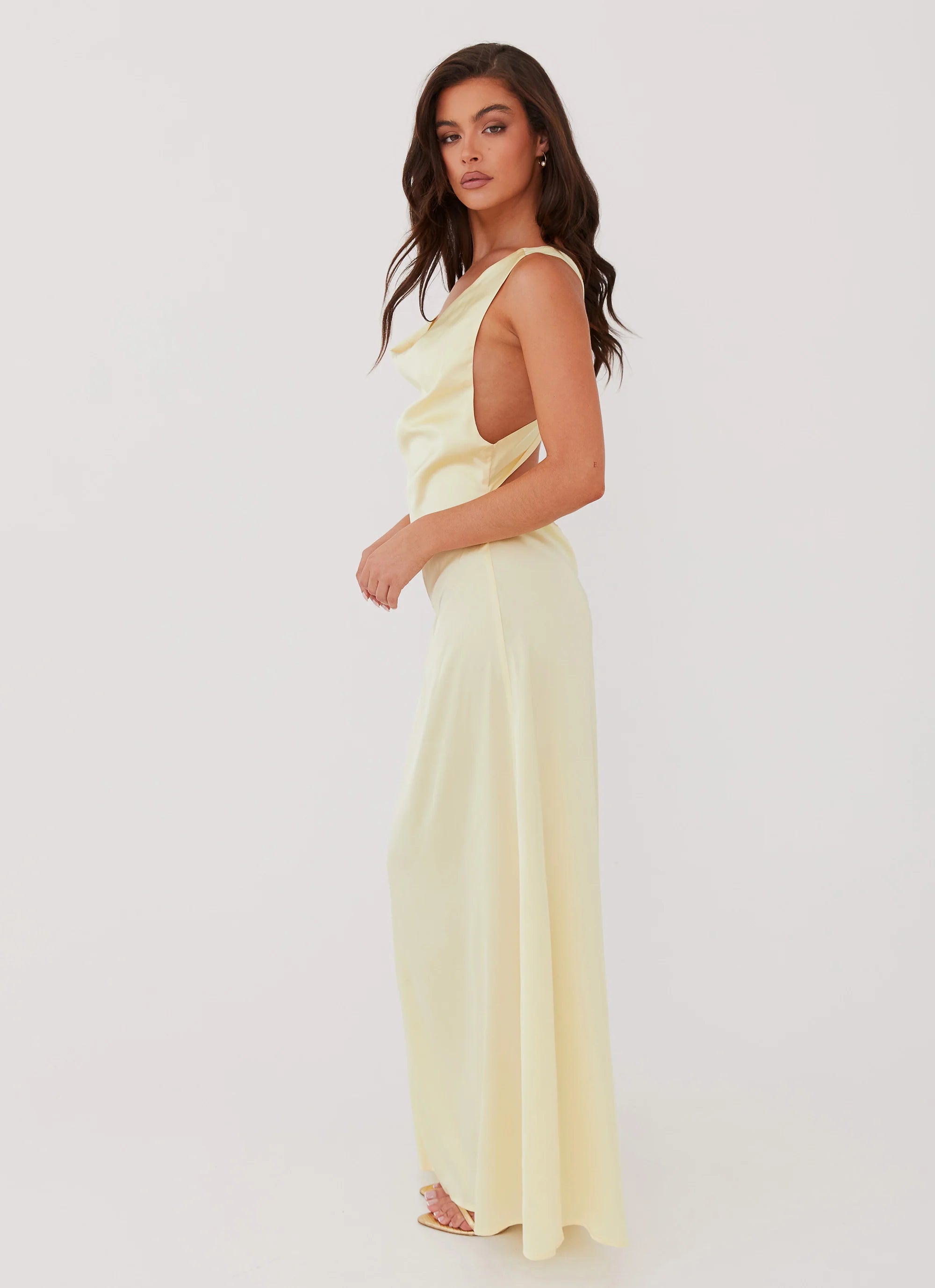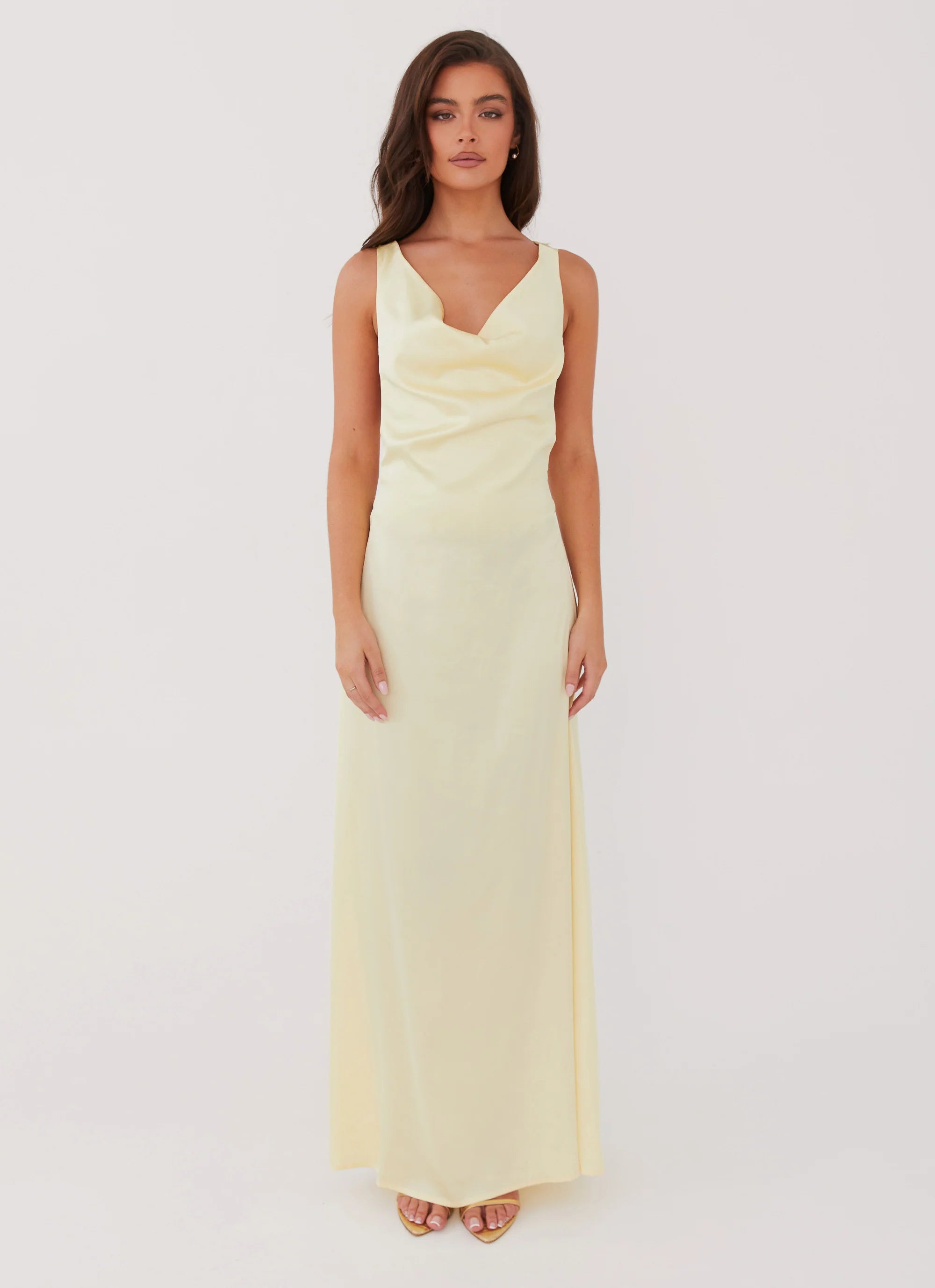 Elevate your evening with our Musa Maxi Dress. Luxurious satin fabric, graceful cowl neckline, and flattering bias cut design. Tailored for golden skies, balmy nights, and captivating nightclub scenes.