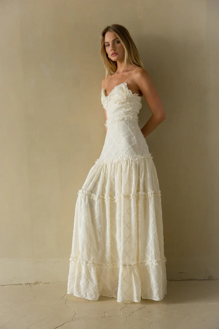 Hopelessly in love with the Percy Lace Maxi Dress. This lace maxi dress features a sweetheart neckline, ruffle trim, and flowy floor-length skirt that will be sure to have the whole place swooning. to polish off the look!