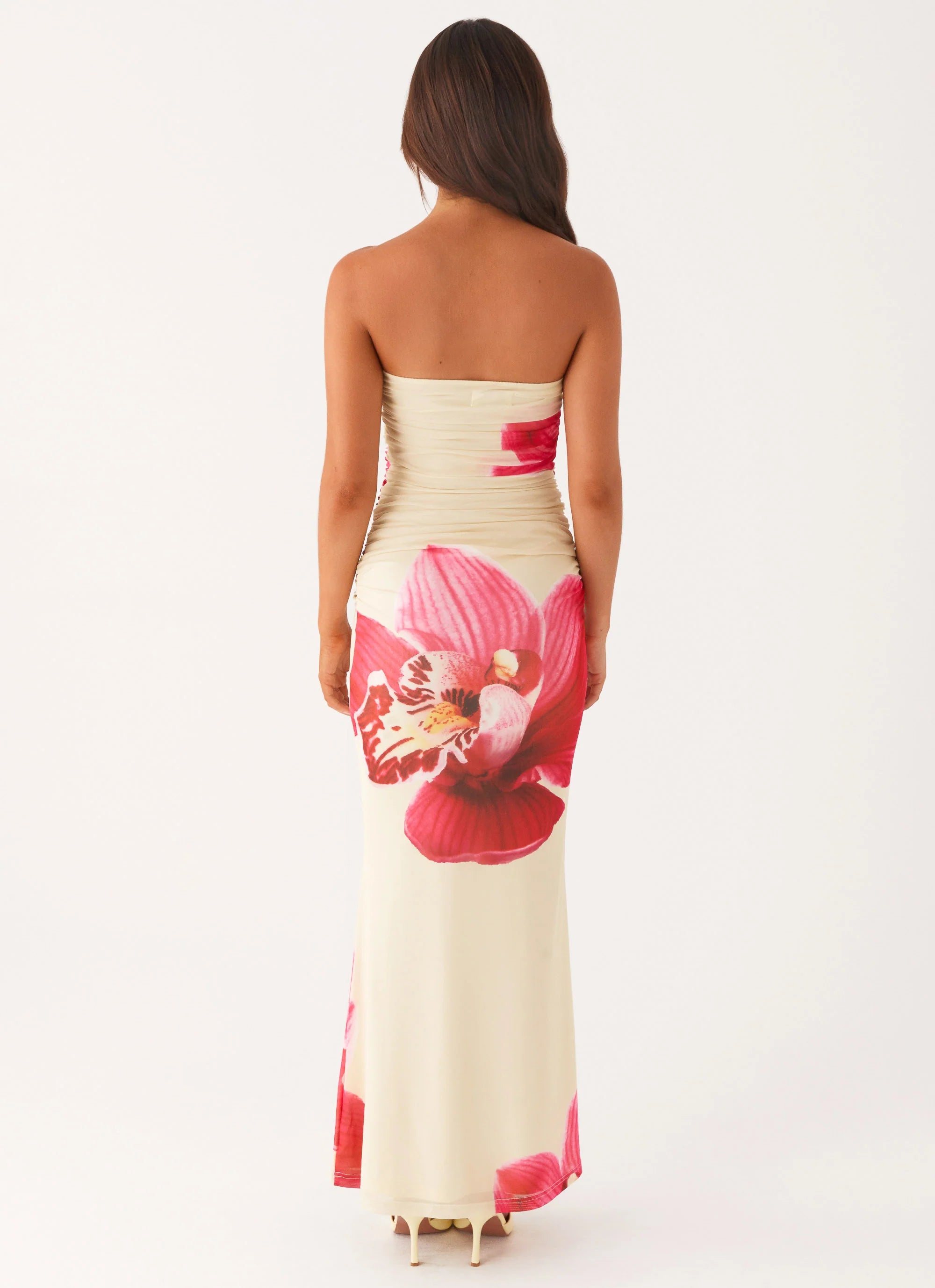 The Rudy Maxi Dress is sleek and statement-making. Featuring a maxi length, strapless neckline, and U-shape metal embellishment, it’s designed for golden skies and nights where bold elegance takes center stage.