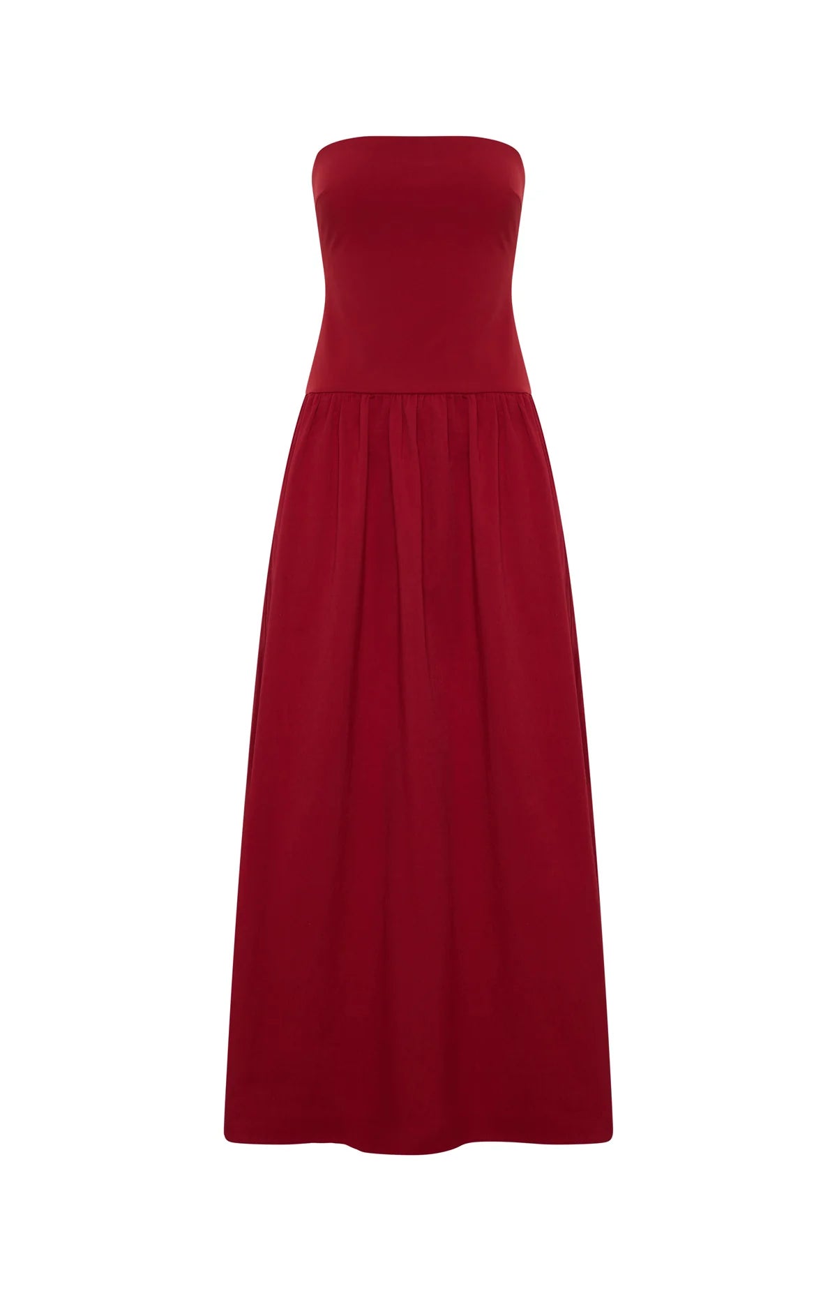 Make an entrance in the Take Back Maxi Dress Red. This strapless silhouette features secure grip tape detailing along the bust, a sleek invisible centre‑back zipper with clasp closure, and a fitted bodice that flows into a gathered skirt for graceful movement. Style with pointed‑toe heels and gold accessories to channel that timeless, holiday vibe.