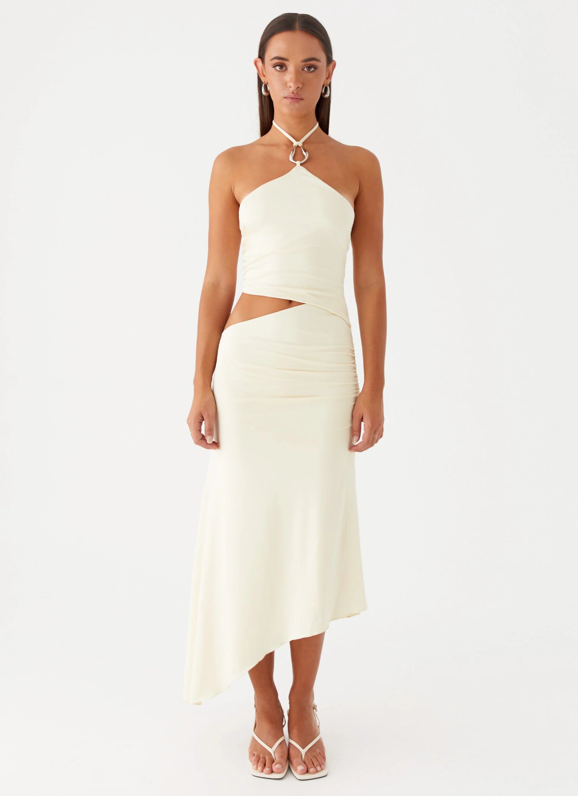 Introducing the Tasha Maxi Dress, where sophistication meets edgy design. Featuring stylish side cut-outs and a delicate neck tie, this dress offers a blend of elegance and allure. Ideal for making a statement at any evening event.